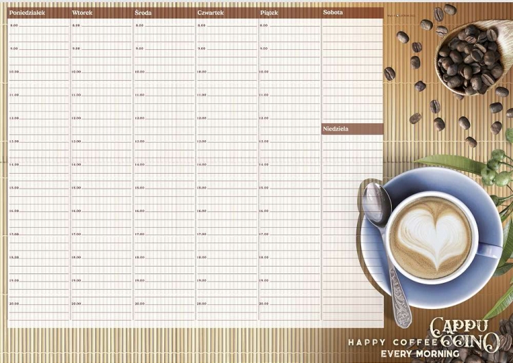 na stronie: pole na notatki dla każdego dnia tygodnia